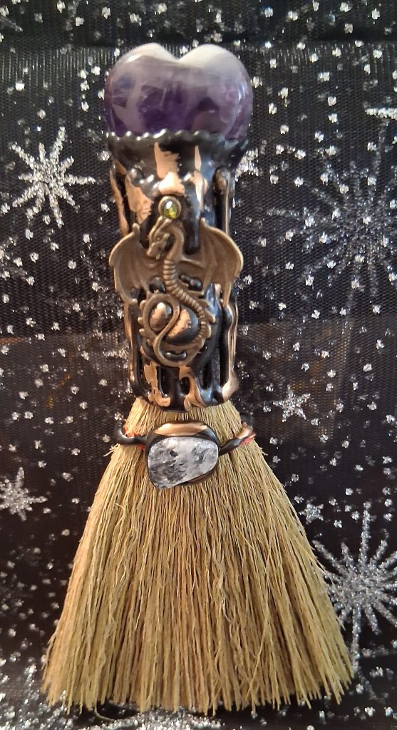 Mini Dragon Broom with real Amythest Crystal on top! https://square.link/u/kUF2WjwM