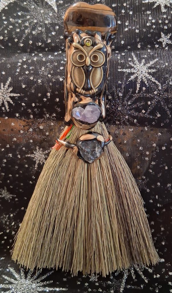 This Mini Owl Broom is one of a kind. Real Tigers Eye! https://square.link/u/4MVHEqZw